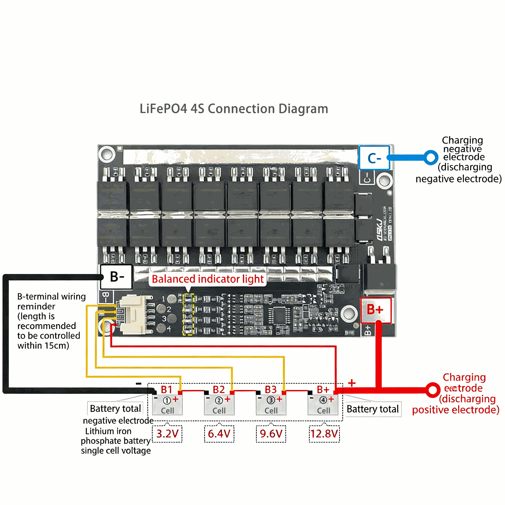 LiFePO4 4S 12V Starter BMS 100A(Peak 2000A) 4-cell Lithium Iron Phosphate Battery Protection Board